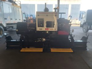 Pequeña extendedora compacta con mesa y silo de equipamiento de grandes dimensiones y peso apta para trabajar en espacios reducidos como garajes de edificios, pabellones, pistas polideportivas, etc. Posibilidad de realizar reparaciones de calles u operaciones de llenado de huecos, ya que no requiere cierre total de la vía en función del tamaño de la máquina.
